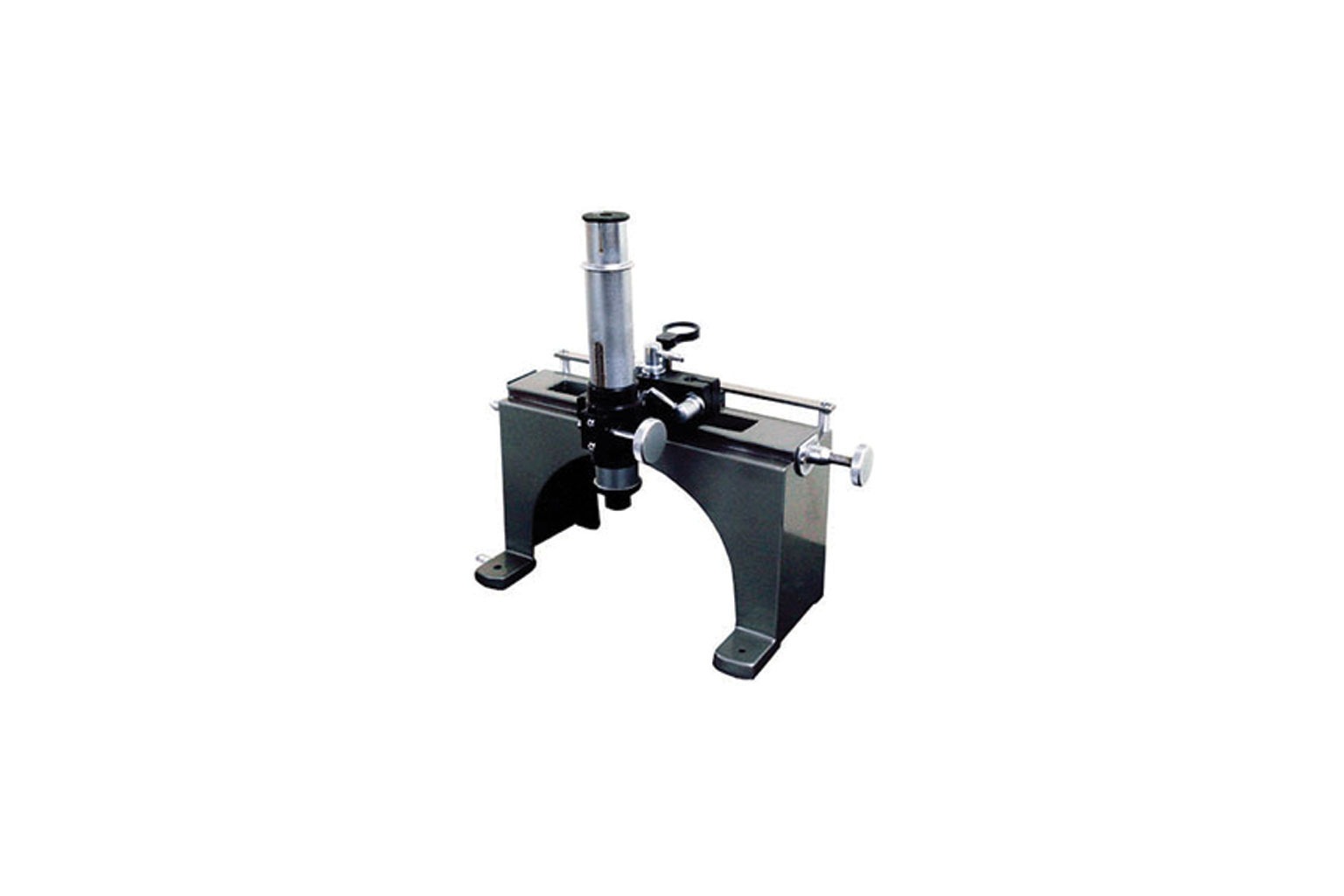 A spherometer is a device used to measure the curvature of spherical surfaces. Its design features a central screw and three outer legs, which create an equilateral triangle shape. A spherometer, just like a vernier caliper has a least count, given by: